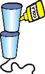 2) Pegue o terceiro copo, faça um furo pequeno no fundo e passe uma das pontas do barbante. Cuidado para não se ferir.