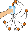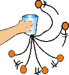 O Objetivo da brincadeira é fazer com que a bola se encaixe dentro do copo. Quem errar, perderá a vez.