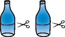 2) Encaixe um lado da garrafa no outro deixando os bicos para fora.