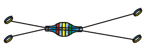 6) Amarre bem firme as argolas, uma em cada ponta do barbante deixando os dois exatamente do mesmo tamanho.